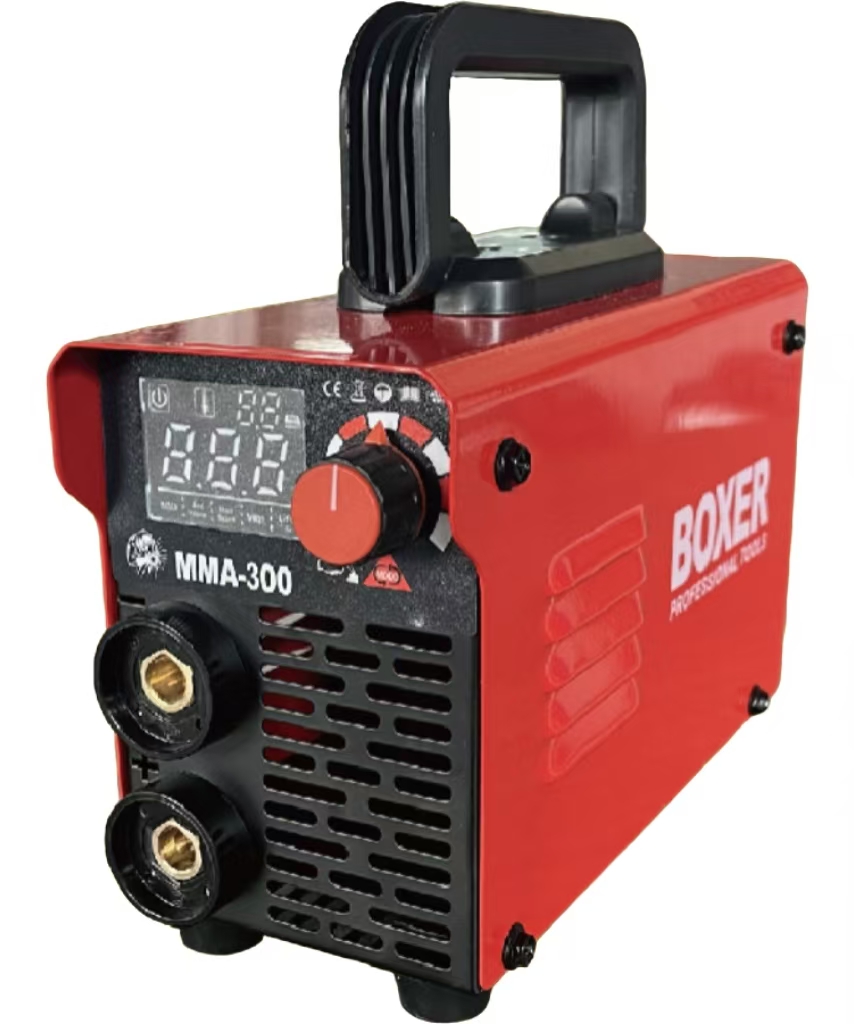 Portable MMA welder with digital display and adjustable settings.